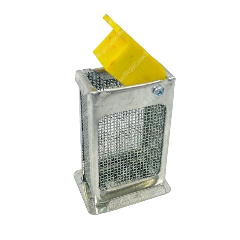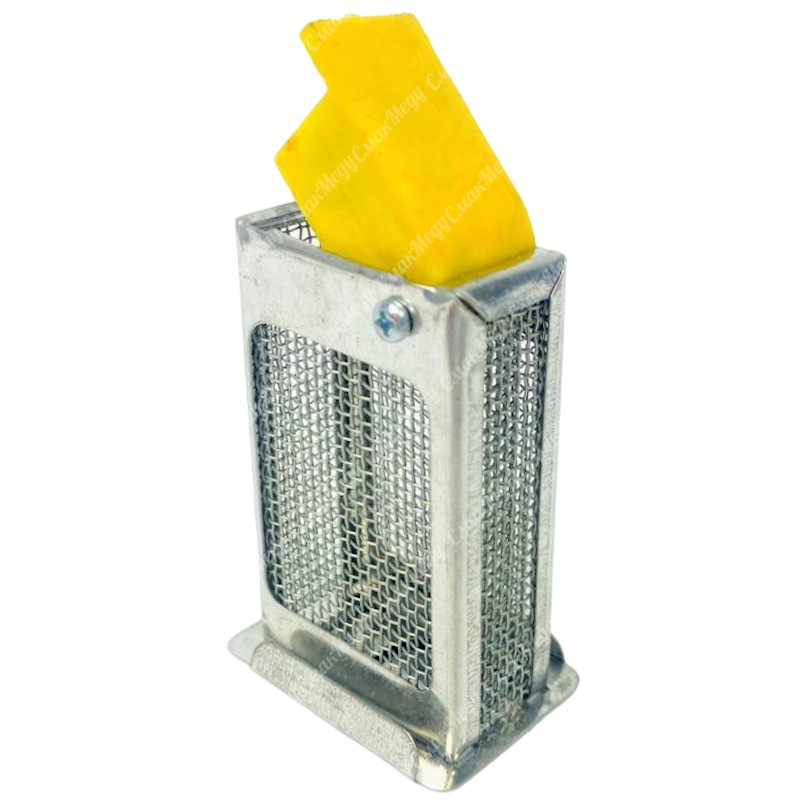 Состоит: из жестяного каркаса и металлической сетки из стали с просветом 2,5 мм на 2,5 мм, верхней пластинки с отверстиями для прохода пчел и подсадки матки. Отверстия закрываются специальной задвижкой. В клеточку вмонтирована деревянная колодочка с круглым отверстием, через которое матке дают корм.| Характеристики | |