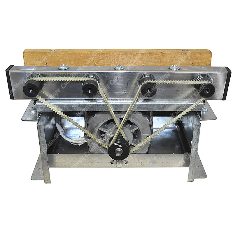 Станок пасечный состоит из неподвижного основания, сверлильной головки и подающего столика. Приводной шкив двигателя имеет 2 канавки и через 2 приводных ремня вращает 4 оси с цанговыми патронами. Заготовка (планка рамки) устанавливается на прижимной деревянной планке на 3 упора. Фиксация заготовки и подача при сверлении производится вручную. Расстояние между отверстиями не регулируемое и составляет 80мм.